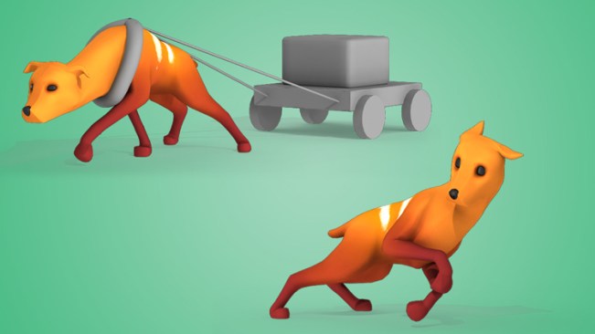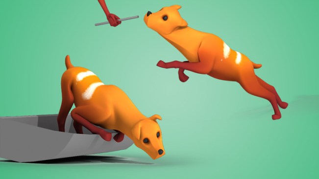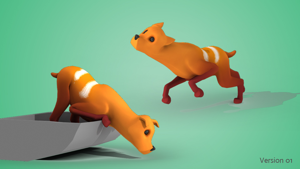 This is my initial version of the playful poses. The great thing was there wern’t too many changes! Basically the critique was to bring the screen left dog’s head down and push his legs back. With the screen right dog, it was more about adjusting the front legs and finding the right interaction with the other dog.